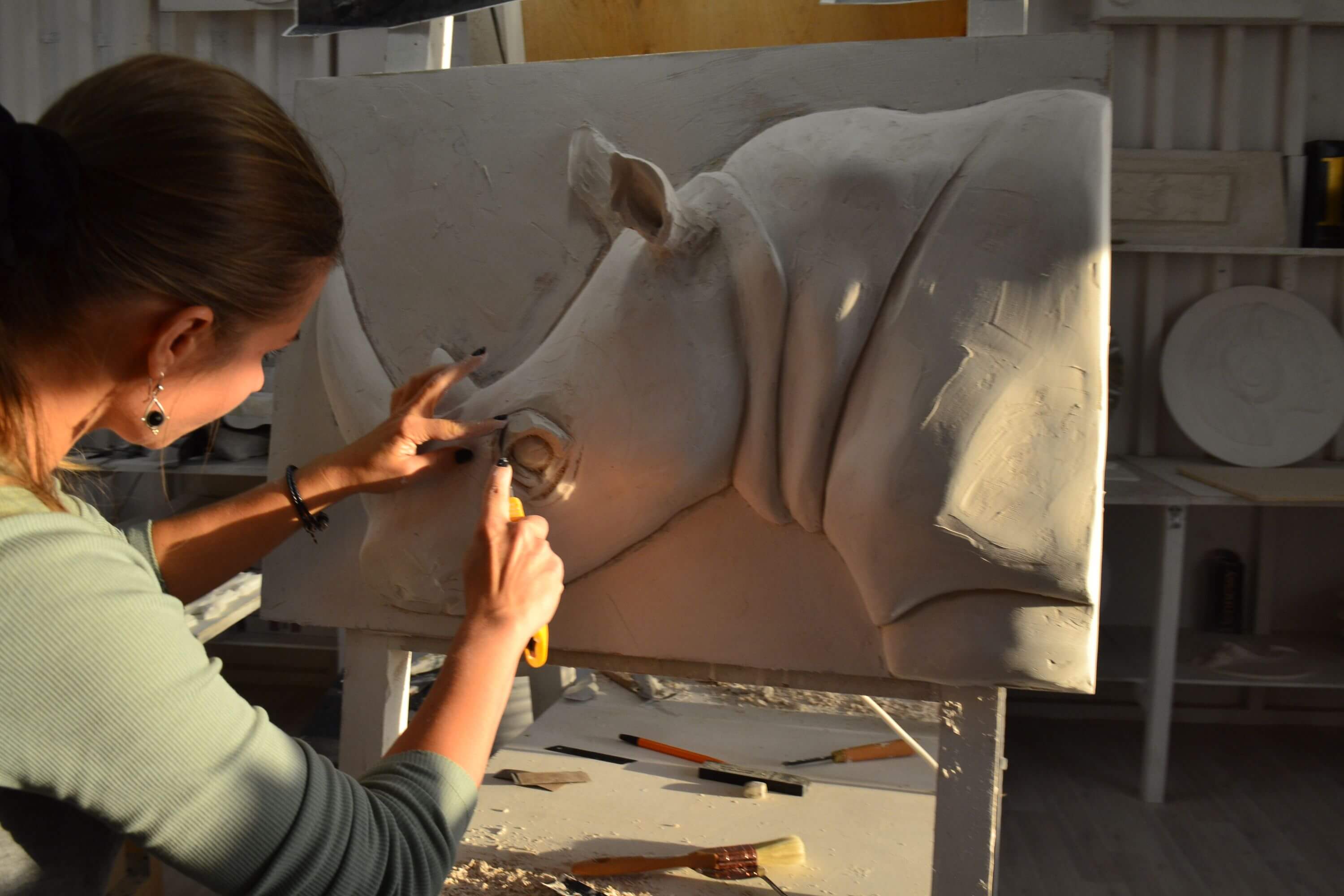 The anatomy of the head of an elephant or a rhinoceros is simplified on the MK. Familiarization with reinforcement methods. The finished work is being done without painting. The peculiarity of the MK is the elaboration of the principle of forming and "stretching" the texture (wrinkles, folds). The MK is divided into the following stages: