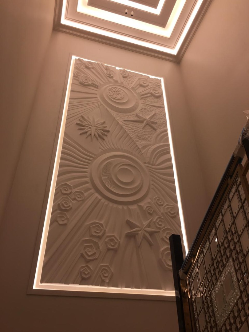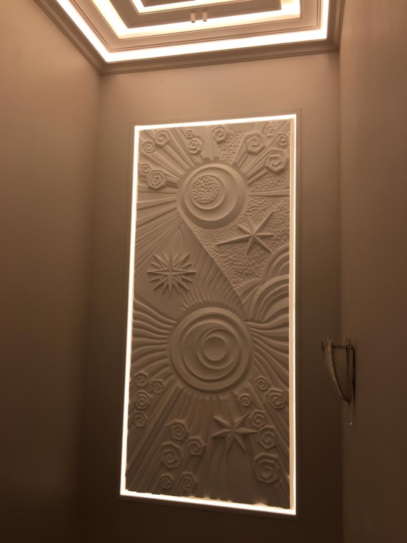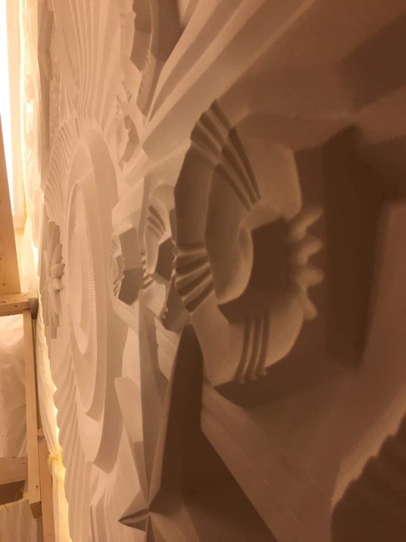 There was even an idea to play out a reference to the universe of George Lucas and “Star Wars” here, making the spheres two battle stations — “Death Star”, and weaving stylized “X-Wings” (rebel fighters. Fans will understand) among the surrounding stars, i.e. to tell this saga in the language of art deco, about how good triumphs over evil.