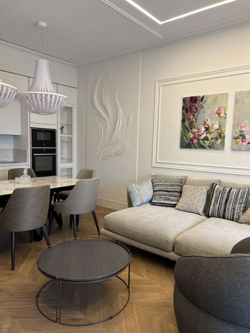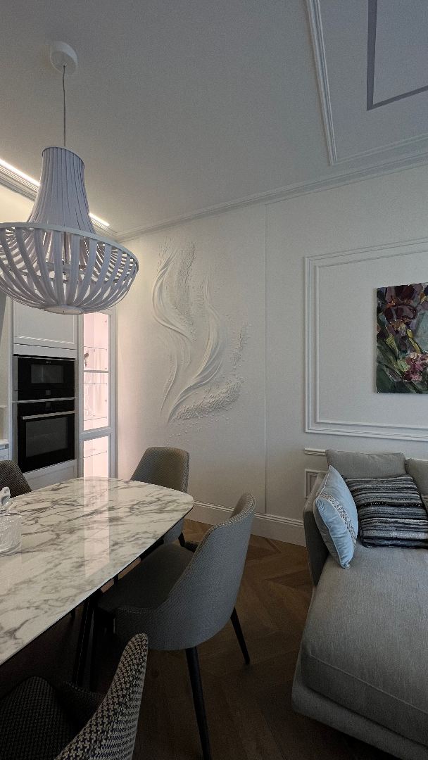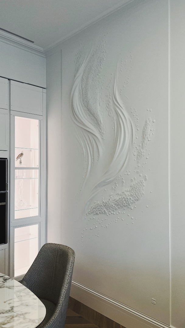 The plot we took was inspired by the Paris exhibition and works of Lauren Collin. I already wrote about her when I shared my vision of trends in bas-relief for 2022. Lauren made a splash in the design industry with her paper technique 3 years ago, and we transferred this trend from paper to plaster.
