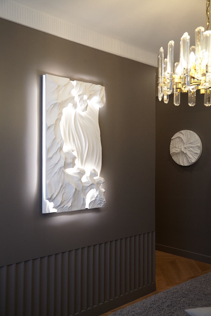 And so that they still intersect, I cut a portal – hole at this point (Three), where I placed the light, thereby setting the third dimension of the painting, perpendicular to the plane of the work.