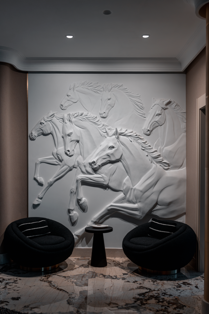 Each depicted horse symbolizes one of the sons of the customer. This added a special personal value and warmth to the work. The customer puts her children into each of them and addresses them as if they are nearby. The embedded symbolism turned the bas-relief into a living story about family ties and the protection that a mother feels towards her children, and how they are always ready to become a support and support for her.