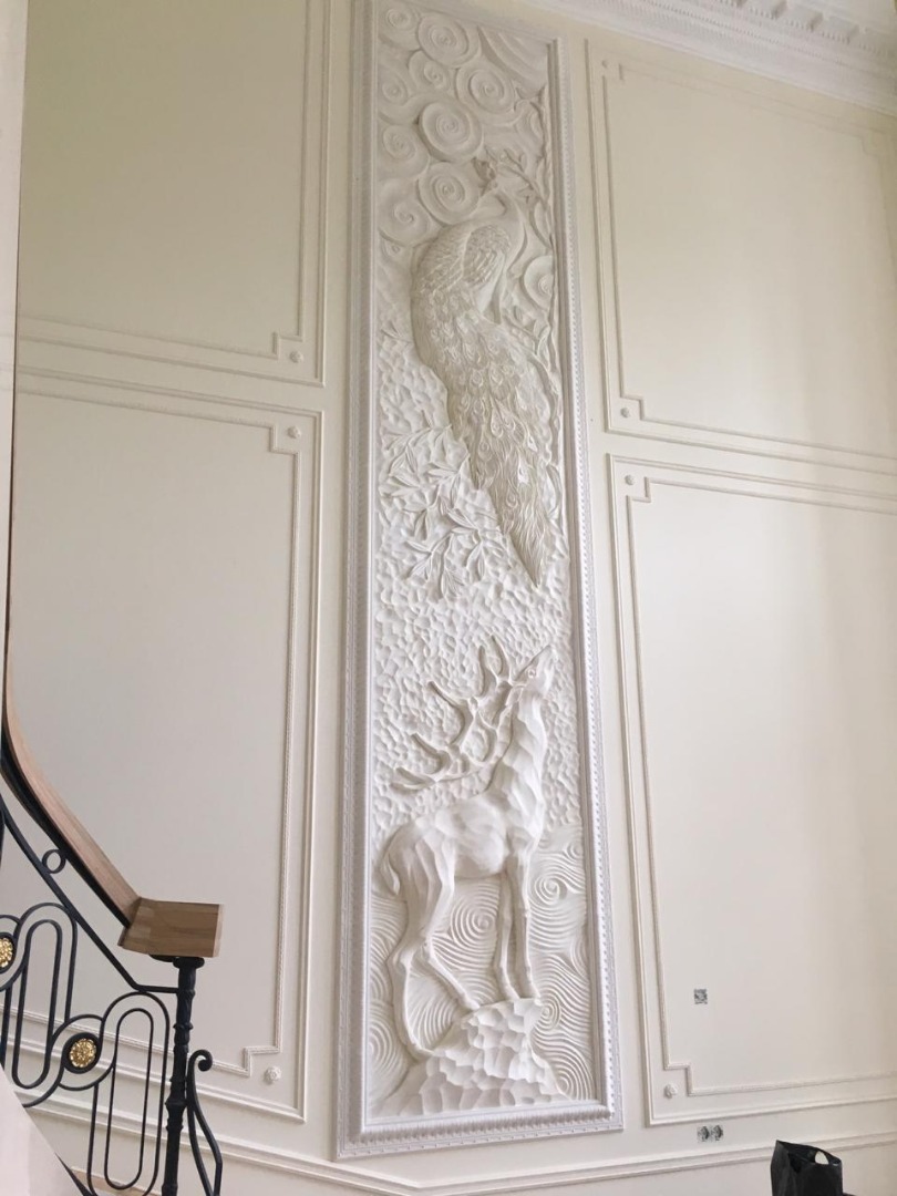 As soon as the project became active again, we completed the work in a short time. To be honest, the panel is unusual for me, at least because of the large scale. Just imagine, 6 meters high and 1 meter wide. Even in our high studio, it was extremely difficult to settle down. To keep the composition, I had to painstakingly lay everything out on the floor and look at the work from a height.