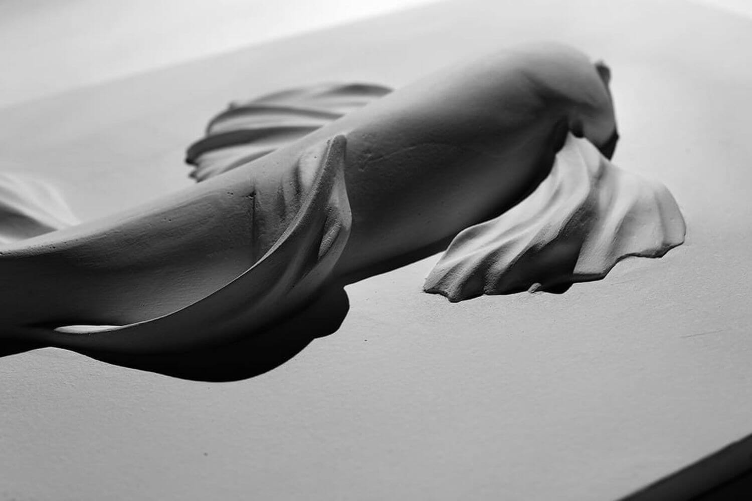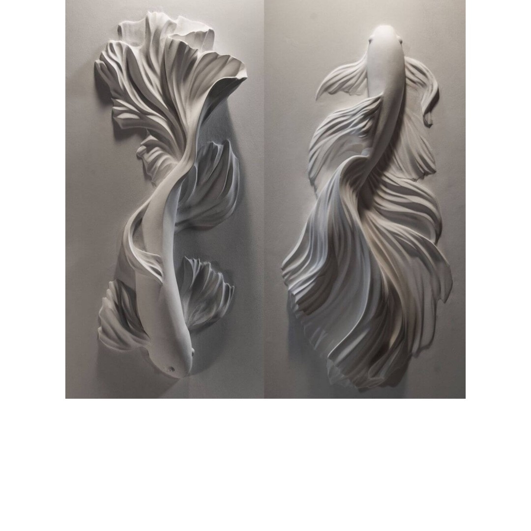 Smooth curves, longitudinal lines - all this creates a streamlined and incredibly attractive panel. It will definitely attract the views of art connoisseurs, make them linger on the fins and tail of the fish, because they create a special shape.
